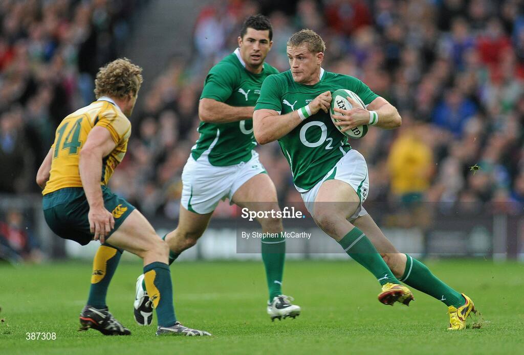 15 November 2009; Jamie Heaslip, Ireland, supported by Rob Kearney in action against Peter Hynes, Australia. Autumn International Guinness Series 2009, Ireland v Australia, Croke Park, Dublin. Picture credit: Stephen McCarthy / SPORTSFILE