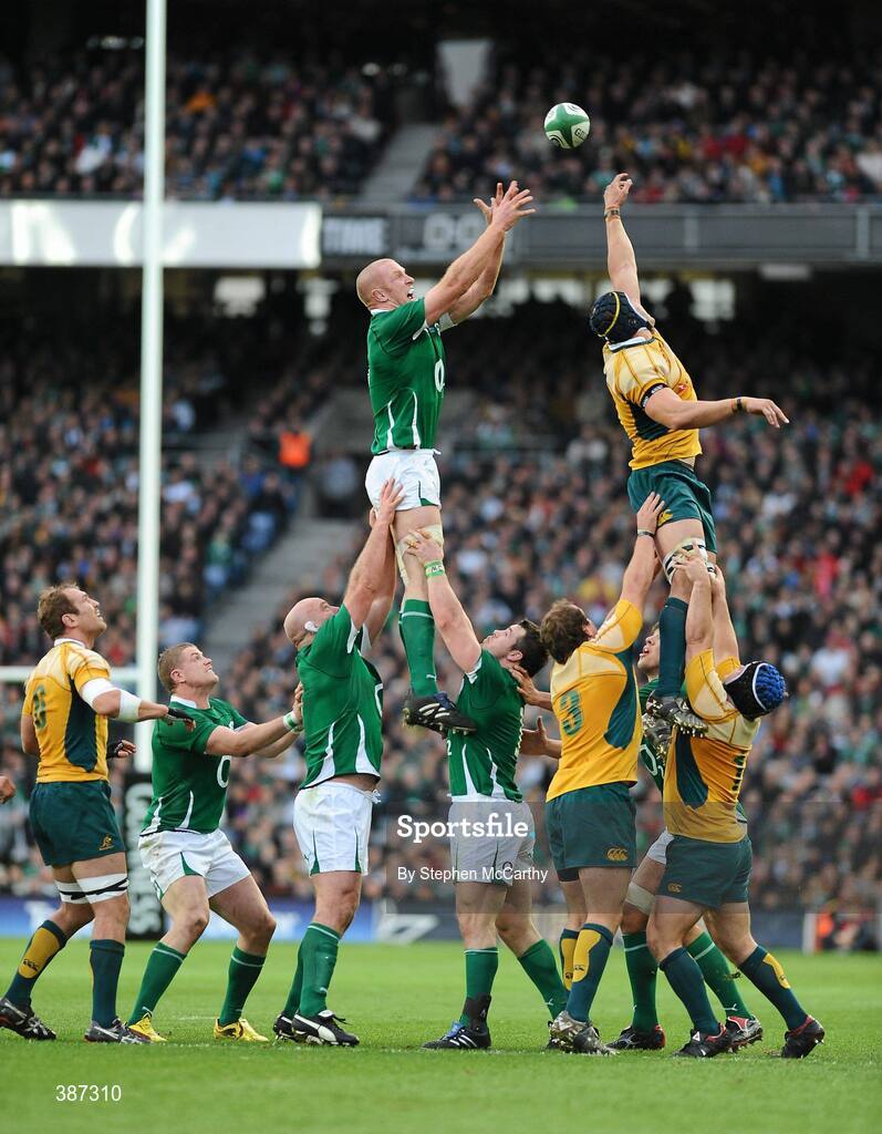15 November 2009; Paul O'Connell, Ireland, contests a lineout with Mark Chisholm, Australia. Autumn International Guinness Series 2009, Ireland v Australia, Croke Park, Dublin. Picture credit: Stephen McCarthy / SPORTSFILE