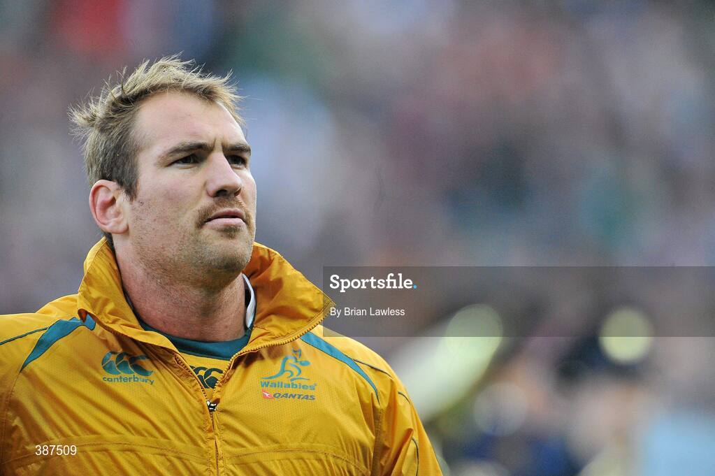 15 November 2009; Australia captain Rocky Elsom stands during the National Anthem. Autumn International Guinness Series 2009, Ireland v Australia, Croke Park, Dublin. Picture credit: Brian Lawless / SPORTSFILE