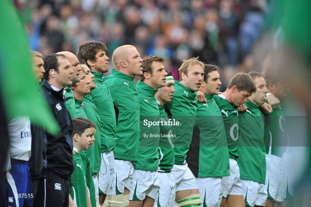 15 November 2009; Ireland players during the National Anthems. Autumn International Guinness Series 2009, Ireland v Australia, Croke Park, Dublin. Picture credit: Brian Lawless / SPORTSFILE