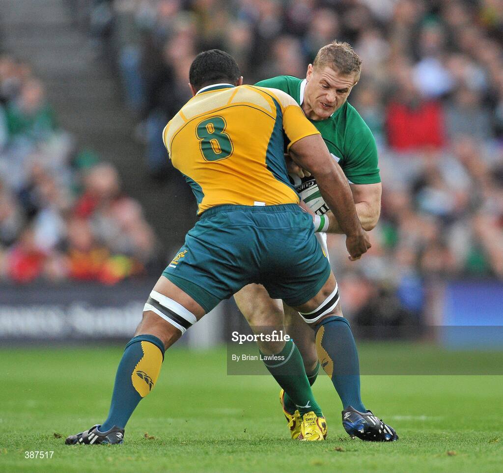 15 November 2009; Jamie Heaslip, Ireland, in action against Wycliff Palu, Australia. Autumn International Guinness Series 2009, Ireland v Australia, Croke Park, Dublin. Picture credit: Brian Lawless / SPORTSFILE
