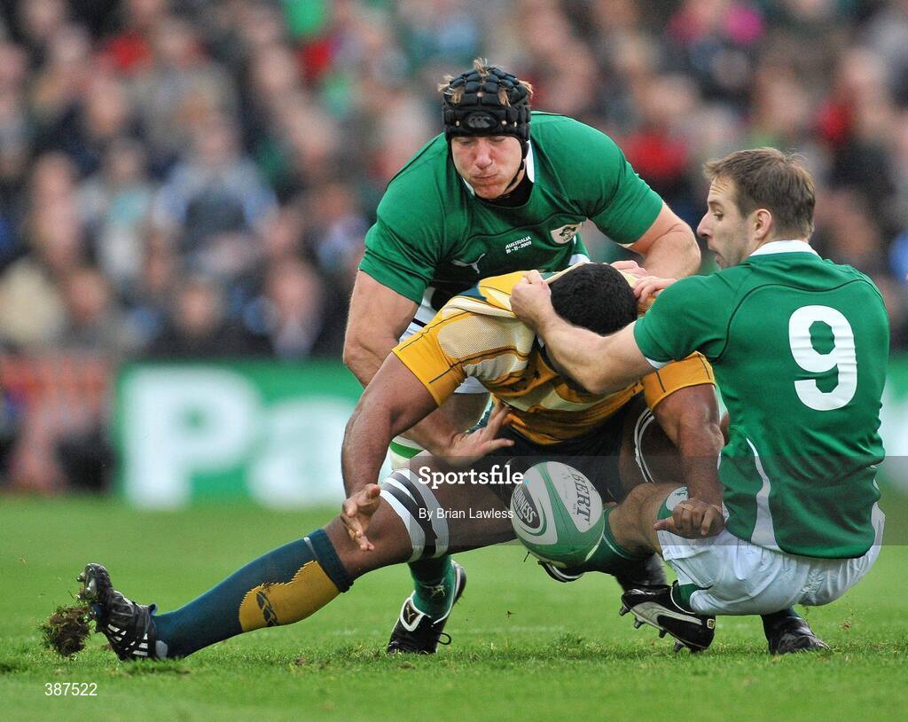 15 November 2009; Tomas O'Leary, right, and Stephen Ferris, Ireland, tackle Wycliff Palu, Australia. Autumn International Guinness Series 2009, Ireland v Australia, Croke Park, Dublin. Picture credit: Brian Lawless / SPORTSFILE