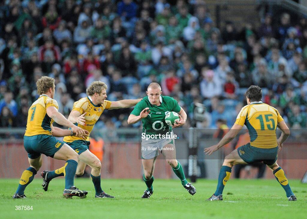 15 November 2009; Keith Earls, Ireland, in action against, from left, David Pocock, Peter Hynes, and Adam Ashley-Cooper, Australia. Autumn International Guinness Series 2009, Ireland v Australia, Croke Park, Dublin. Picture credit: Brian Lawless / SPORTSFILE