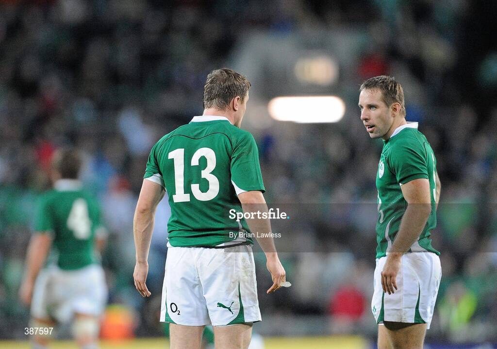 15 November 2009; Ireland's Tomas O'Leary with team captain Brian O'Driscoll. Autumn International Guinness Series 2009, Ireland v Australia, Croke Park, Dublin. Picture credit: Brian Lawless / SPORTSFILE