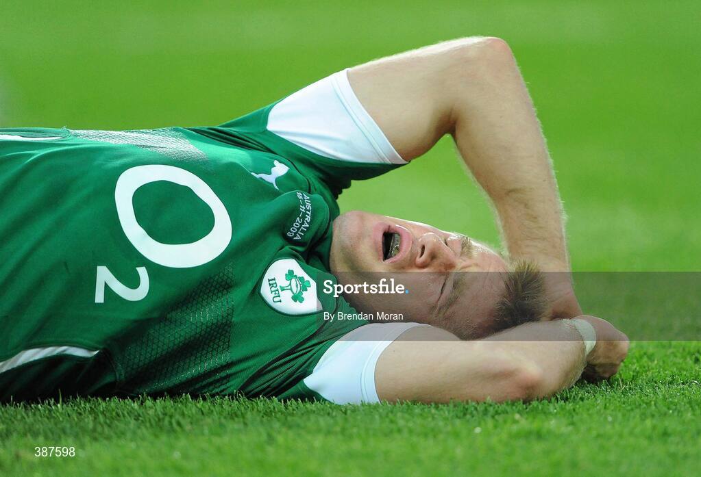 15 November 2009; Ireland's Luke Fitzgerald in distress before leaving the pitch with a knee injury. Autumn International Guinness Series 2009, Ireland v Australia, Croke Park, Dublin. Picture credit: Brendan Moran / SPORTSFILE