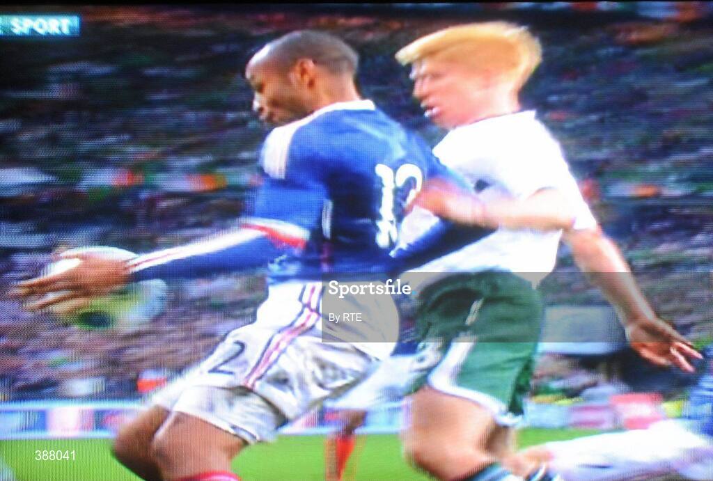 18 November 2009; A videograb of the handball by France's Thierry Henry which directly led to France's equalising goal on the night and put them into a 2-1 lead in extra-time. FIFA 2010 World Cup Qualifying Play-off 2nd Leg, Republic of Ireland v France, Stade de France, Saint Denis, Paris. Picture credit: RTE