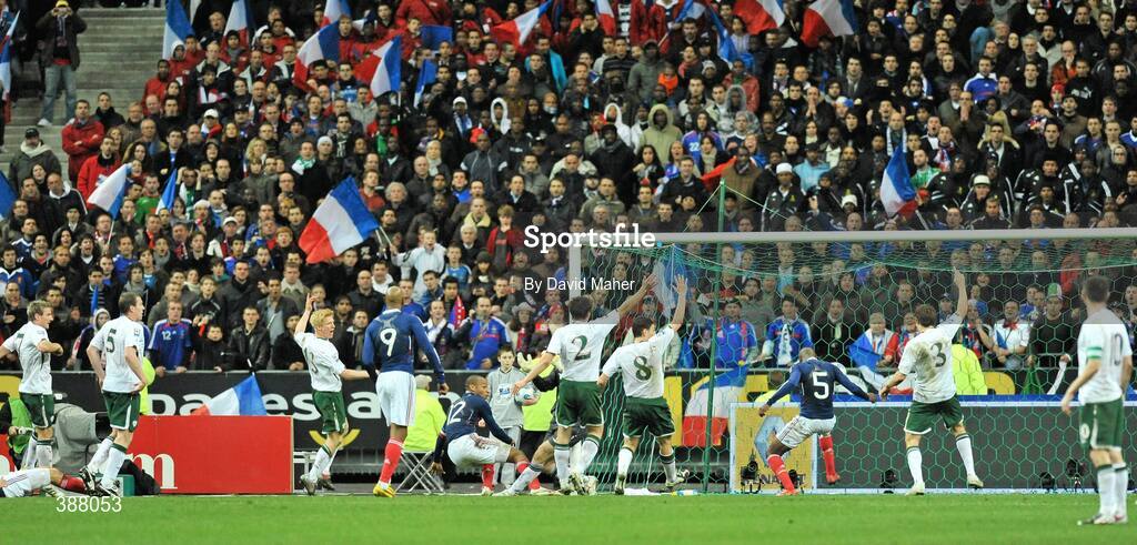 18 November 2009; William Gallas, France, 5, scores his side's first goal after Thierry Henry had handled the ball. FIFA 2010 World Cup Qualifying Play-off 2nd Leg, Republic of Ireland v France, Stade de France, Saint-Denis, Paris, France. Picture credit: David Maher / SPORTSFILE