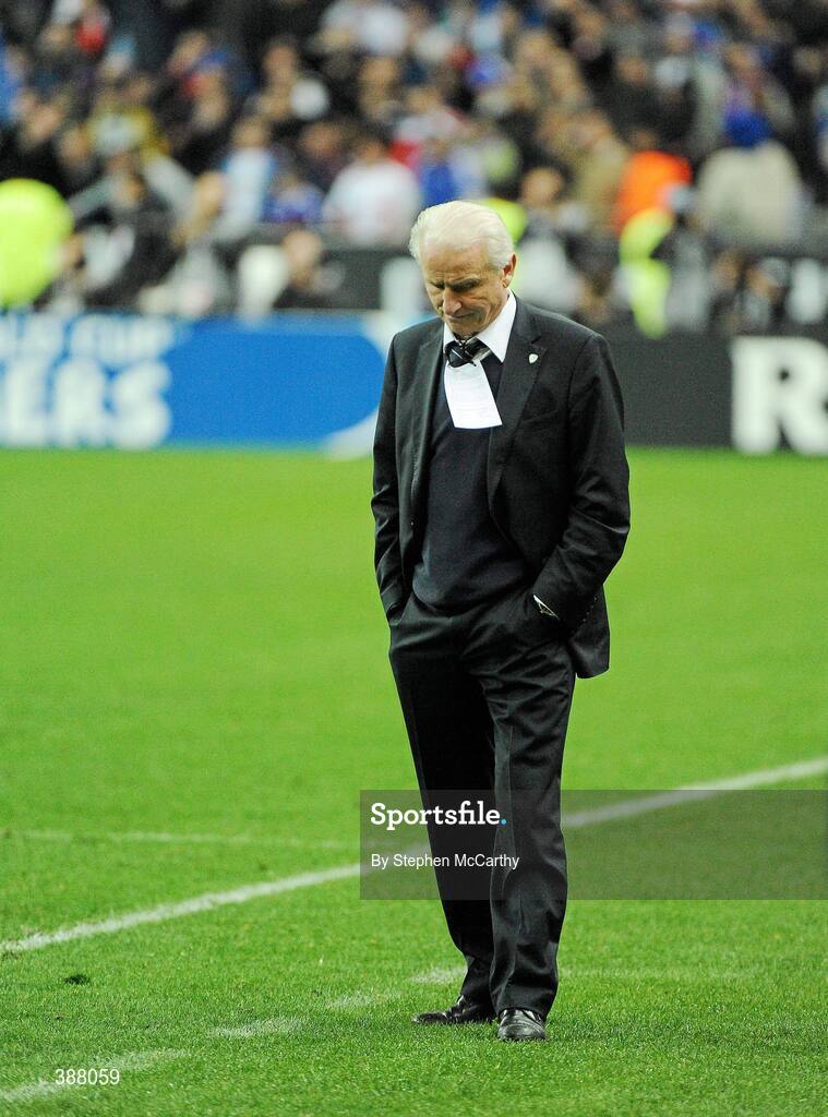 18 November 2009; A dejected Giovanni Trapattoni, Republic of Ireland manager, during the final moments of the game. FIFA 2010 World Cup Qualifying Play-off 2nd Leg, Republic of Ireland v France, Stade de France, Saint-Denis, Paris, France. Picture credit: Stephen McCarthy / SPORTSFILE