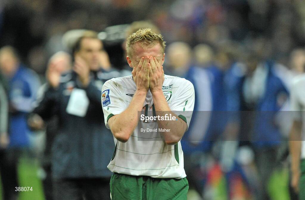 18 November 2009; A dejected Damien Duff makes his way to the Republic of Ireland dressing rooms at the end of the game. FIFA 2010 World Cup Qualifying Play-off 2nd Leg, Republic of Ireland v France, Stade de France, Saint-Denis, Paris, France. Picture credit: David Maher / SPORTSFILE