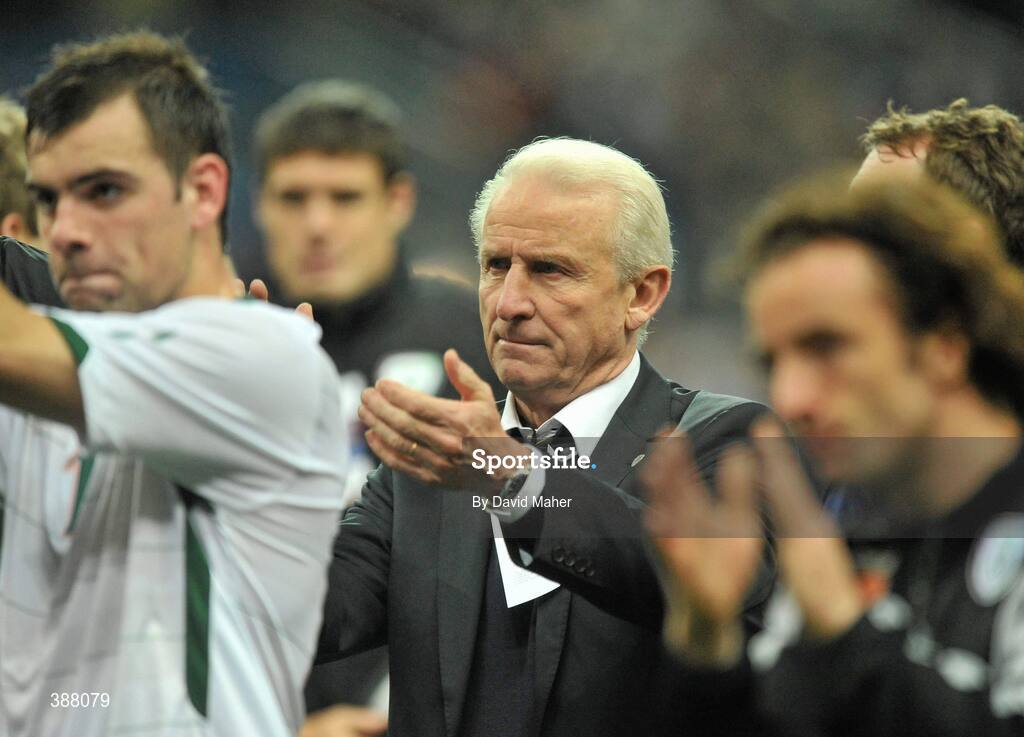 18 November 2009; Republic of Ireland manager Giovanni Trapattoni at the end of the game. FIFA 2010 World Cup Qualifying Play-off 2nd Leg, Republic of Ireland v France, Stade de France, Saint-Denis, Paris, France. Picture credit: David Maher / SPORTSFILE