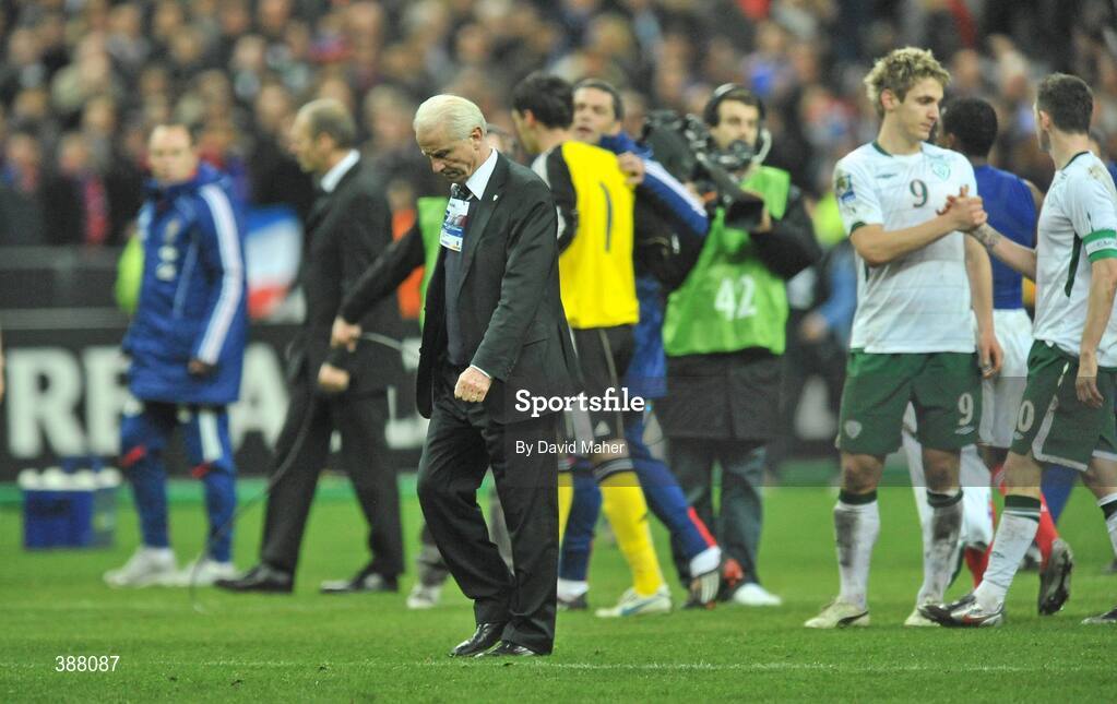18 November 2009; A dejected Republic of Ireland manager Giovanni Trapattoni at the end of the game. FIFA 2010 World Cup Qualifying Play-off 2nd Leg, Republic of Ireland v France, Stade de France, Saint-Denis, Paris, France. Picture credit: David Maher / SPORTSFILE