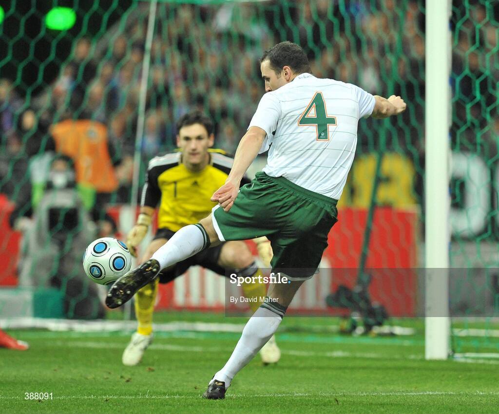 18 November 2009; John O'Shea, Republic of Ireland, shoots on goal during the early stages of the second half. FIFA 2010 World Cup Qualifying Play-off 2nd Leg, Republic of Ireland v France, Stade de France, Saint-Denis, Paris, France. Picture credit: David Maher / SPORTSFILE