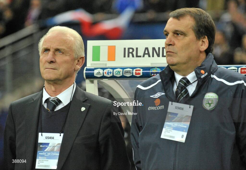 18 November 2009; Republic of Ireland manager Giovanni Trapattoni with assistant manager Marco Tardelli before the start of the game. FIFA 2010 World Cup Qualifying Play-off 2nd Leg, Republic of Ireland v France, Stade de France, Saint-Denis, Paris, France. Picture credit: David Maher / SPORTSFILE