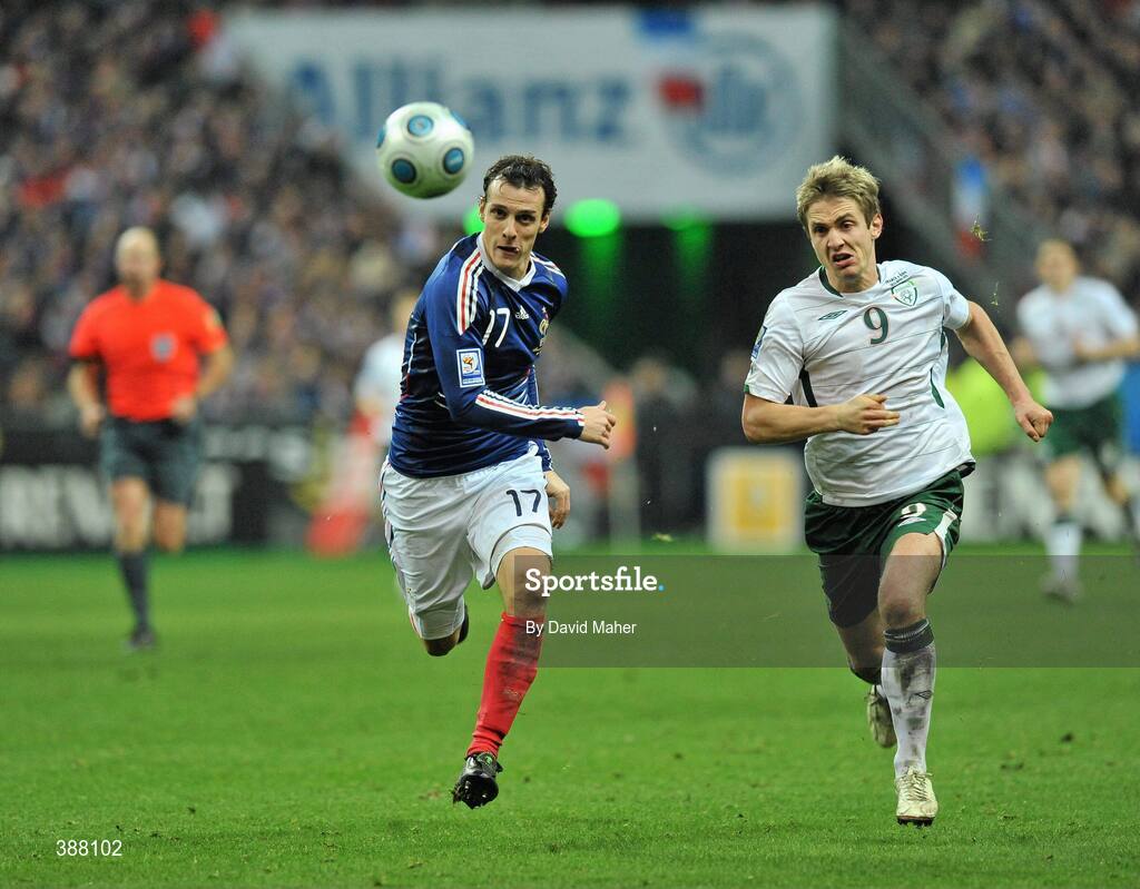 18 November 2009; Kevin Doyle, Republic of Ireland, in action against Sebastien Squillaci, France. FIFA 2010 World Cup Qualifying Play-off 2nd Leg, Republic of Ireland v France, Stade de France, Saint-Denis, Paris, France. Picture credit: David Maher / SPORTSFILE