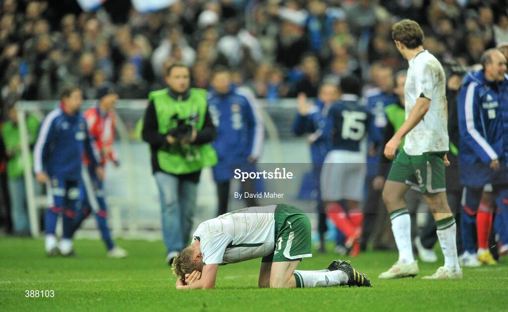 18 November 2009; A dejected Damien Duff, Republic of Ireland, at the end of the game. FIFA 2010 World Cup Qualifying Play-off 2nd Leg, Republic of Ireland v France, Stade de France, Saint-Denis, Paris, France. Picture credit: David Maher / SPORTSFILE