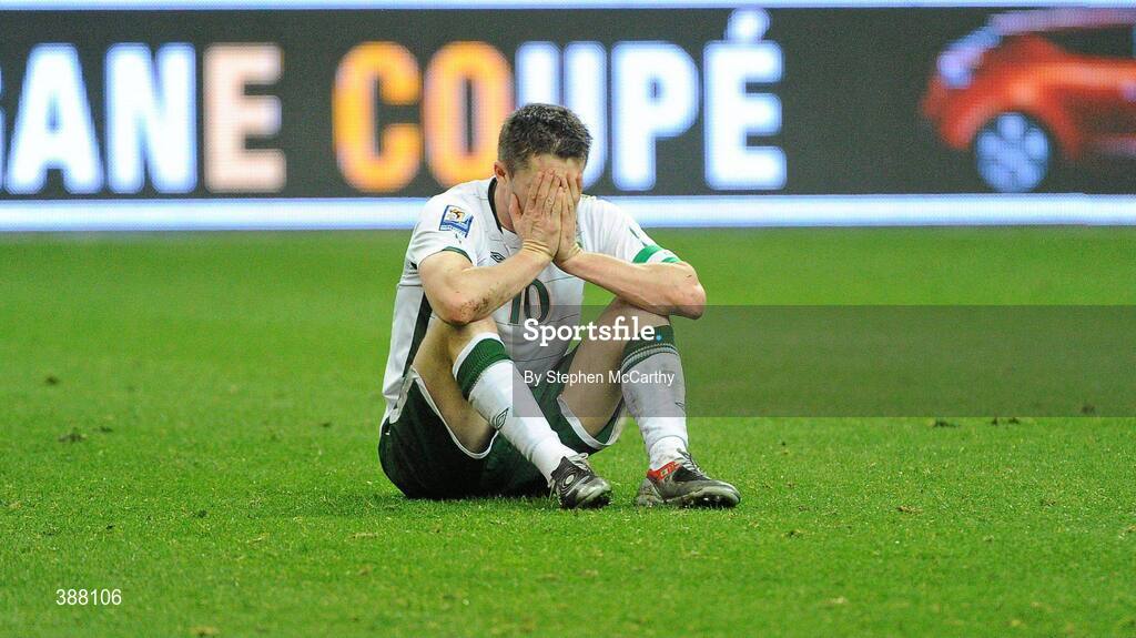 18 November 2009; Republic of Ireland captain Robbie Keane after the match. FIFA 2010 World Cup Qualifying Play-off 2nd Leg, Republic of Ireland v France, Stade de France, Saint-Denis, Paris, France. Picture credit: Stephen McCarthy / SPORTSFILE
