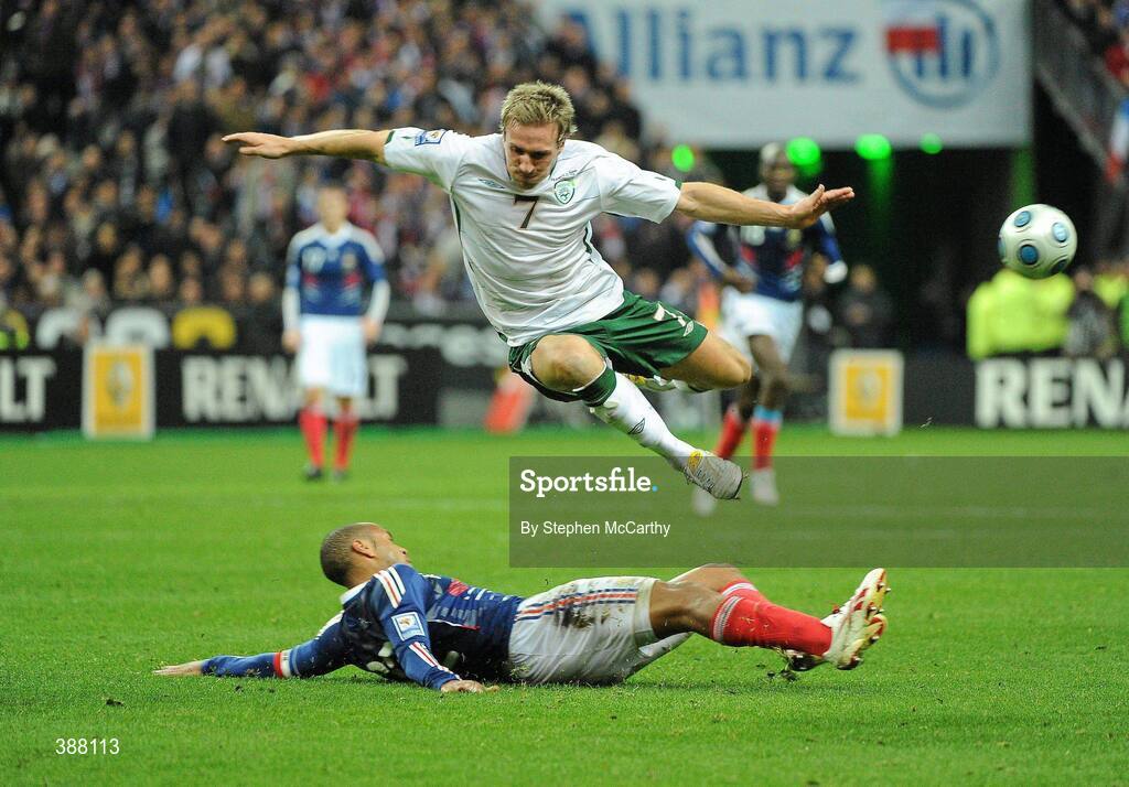 18 November 2009; Liam Lawrence, Republic of Ireland, in action against Thierry Henry, France. FIFA 2010 World Cup Qualifying Play-off 2nd Leg, Republic of Ireland v France, Stade de France, Saint-Denis, Paris, France. Picture credit: Stephen McCarthy / SPORTSFILE