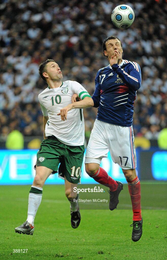 18 November 2009; Sébastien Squillaci, France, in action against Robbie Keane, Republic of Ireland. FIFA 2010 World Cup Qualifying Play-off 2nd Leg, Republic of Ireland v France, Stade de France, Saint-Denis, Paris, France. Picture credit: Stephen McCarthy / SPORTSFILE