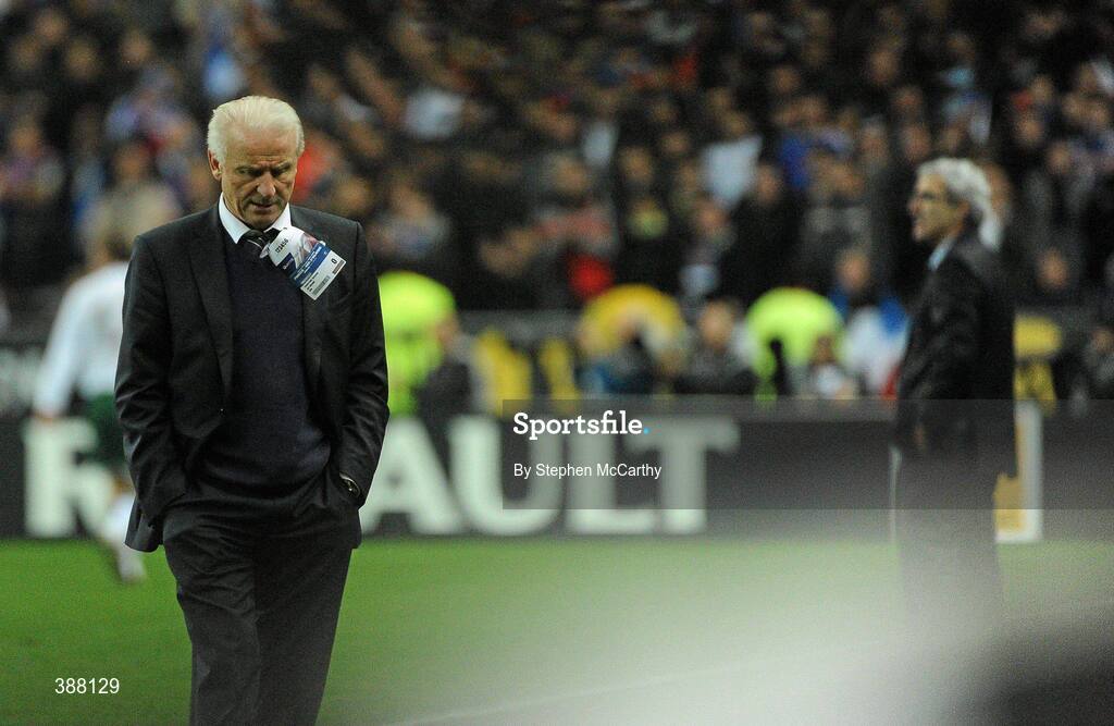 18 November 2009; Republic of Ireland manager Giovanni Trappatoni, left, and France manager Raymond Domenech. FIFA 2010 World Cup Qualifying Play-off 2nd Leg, Republic of Ireland v France, Stade de France, Saint-Denis, Paris, France. Picture credit: Stephen McCarthy / SPORTSFILE