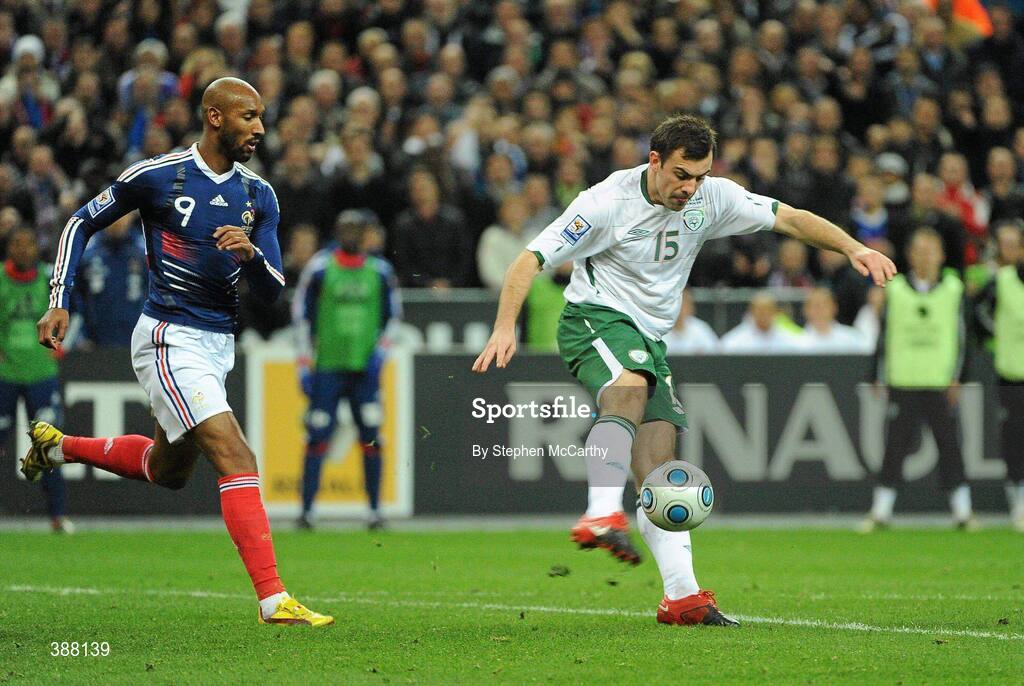 18 November 2009; Darron Gibson, Republic of Ireland, in action against Nicolas Anelka, France. FIFA 2010 World Cup Qualifying Play-off 2nd Leg, Republic of Ireland v France, Stade de France, Saint-Denis, Paris, France. Picture credit: Stephen McCarthy / SPORTSFILE