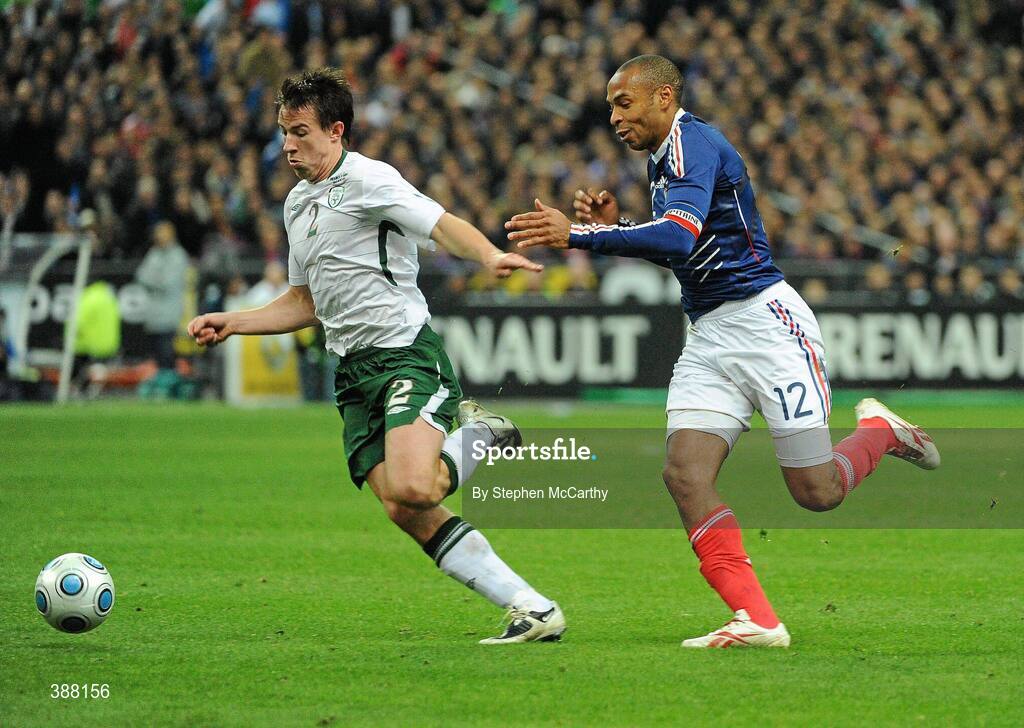 18 November 2009; Sean St. Ledger, Republic of Ireland, in action against Thierry Henry, France. FIFA 2010 World Cup Qualifying Play-off 2nd Leg, Republic of Ireland v France, Stade de France, Saint-Denis, Paris, France. Picture credit: Stephen McCarthy / SPORTSFILE