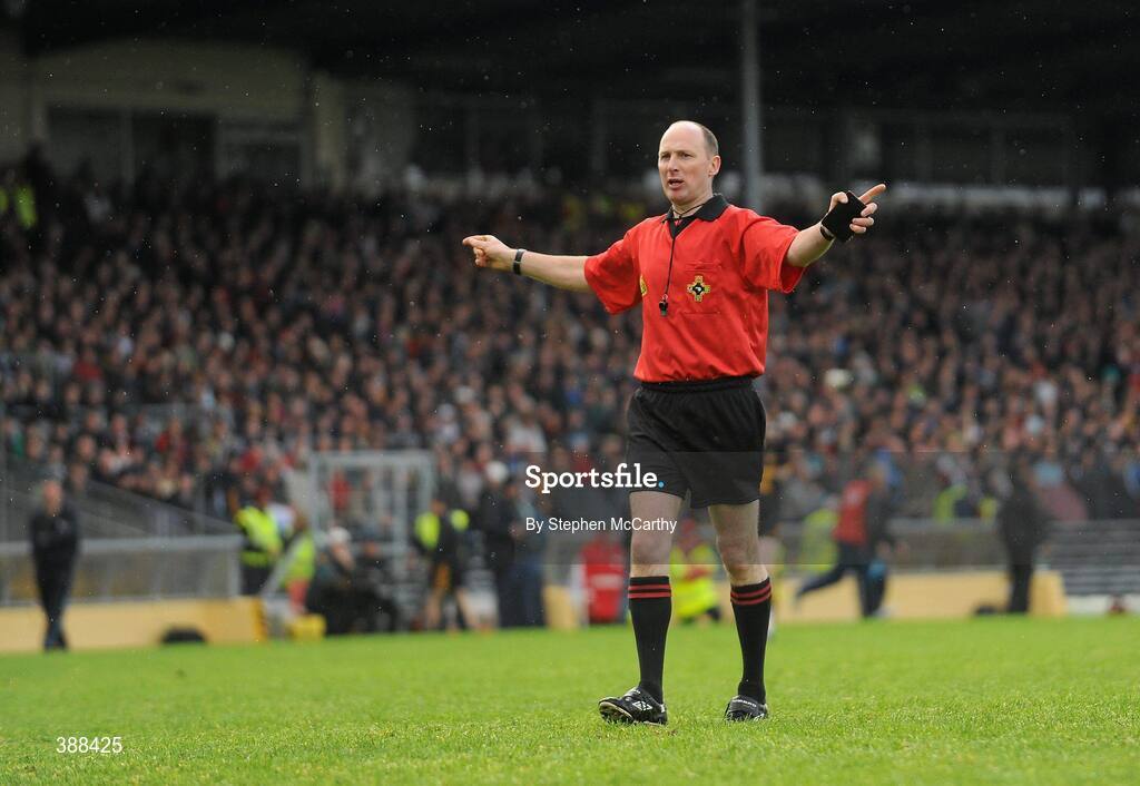 1 November 2009; Referee Ger Lynch awards a penalty to South Kerry. Kerry Senior Football County Championship Final, Dr. Crokes v South Kerry. Fitzgerald Stadium, Killarney, Co. Kerry. Picture credit: Stephen McCarthy / SPORTSFILE