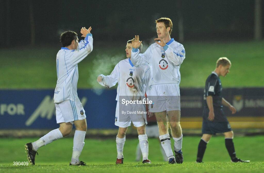 2 December 2009; Sean Houston, right, UCD, celebrates after scoring his sides fourth goal with team-mate Brian Gaffney. Under-20 Dr. Tony O’Neill League of Ireland Cup Final, UCD v Salthill Devon, UCD Bowl, Belfield, Dublin. Picture credit: David Maher / SPORTSFILE