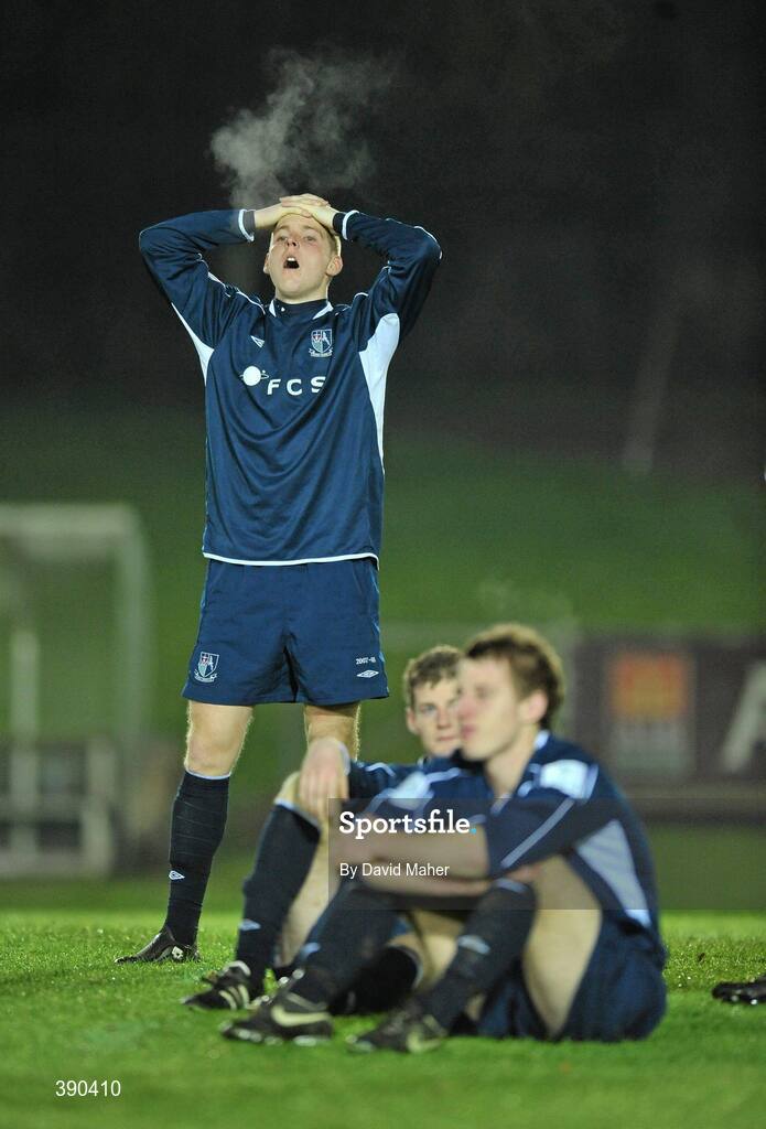 2 December 2009; A dejected Damien O'Reilly, Salthill Devon, at the end of the game. Under-20 Dr. Tony O’Neill League of Ireland Cup Final, UCD v Salthill Devon, UCD Bowl, Belfield, Dublin. Picture credit: David Maher / SPORTSFILE