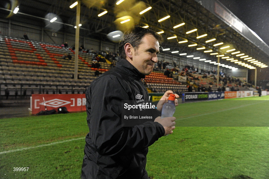 4 February 2010; Bohemians manager Pat Fenlon makes his way out for the start of the match. Pre-Season Friendly, Bohemians v Athlone Town, Dalymount Park, Dublin. Picture credit: Brian Lawless / SPORTSFILE
