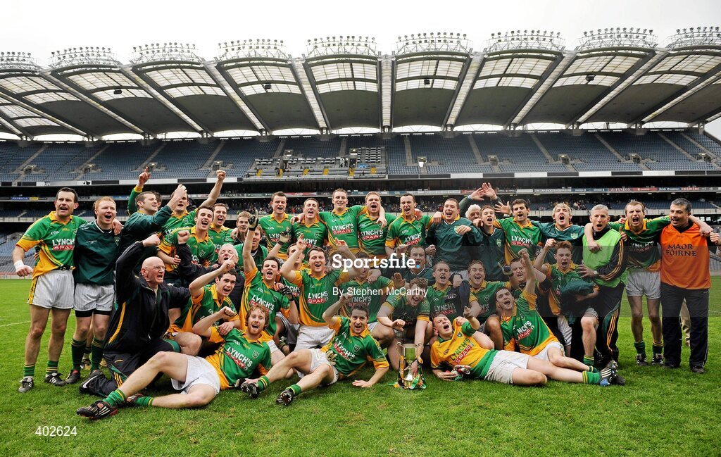 14 February 2010; The Castlegregory team celebrate their victory. AIB GAA Football All-Ireland Junior Club Championship Final, Castlegregory, Kerry, v Kiltimagh, Mayo, Croke Park, Dublin. Picture credit: Stephen McCarthy / SPORTSFILE