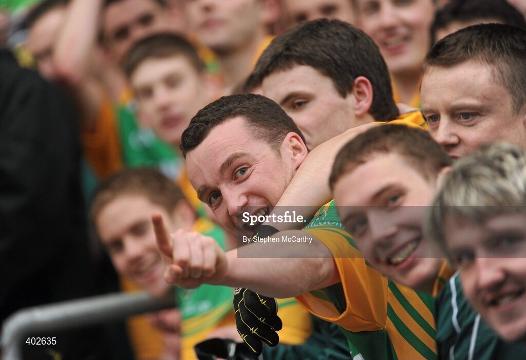 14 February 2010; Tommy Reidy, Castlegregory, and team-mates celebrate their victory. AIB GAA Football All-Ireland Junior Club Championship Final, Castlegregory, Kerry, v Kiltimagh, Mayo, Croke Park, Dublin. Picture credit: Stephen McCarthy / SPORTSFILE