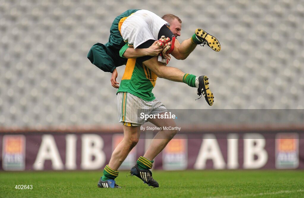 14 February 2010; Castlegregory goalkeeper Shane Kenny celebrates with Gavin O'Connor. AIB GAA Football All-Ireland Junior Club Championship Final, Castlegregory, Kerry, v Kiltimagh, Mayo, Croke Park, Dublin. Picture credit: Stephen McCarthy / SPORTSFILE