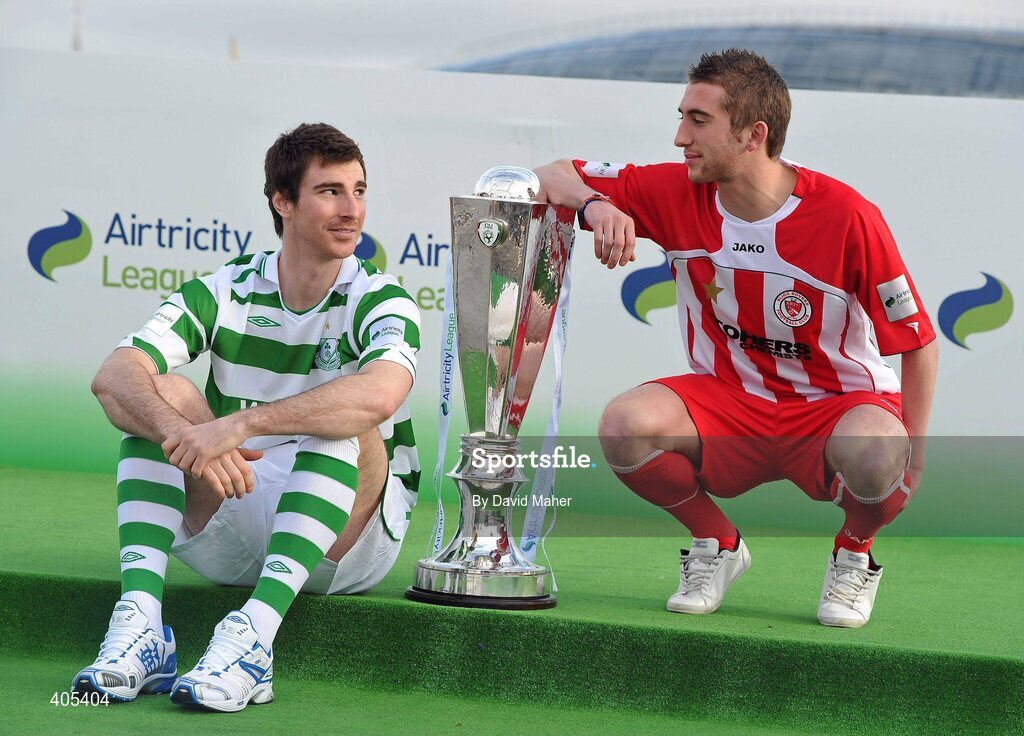 26 February 2010; Craig Sives, Shamrock Rovers, and Iorlaigh Davoren, Sligo Rovers, at the launch of 2010 Airtricity League. D4 Berkely Hotel, Ballsbridge, Dublin. Picture credit: David Maher / SPORTSFILE