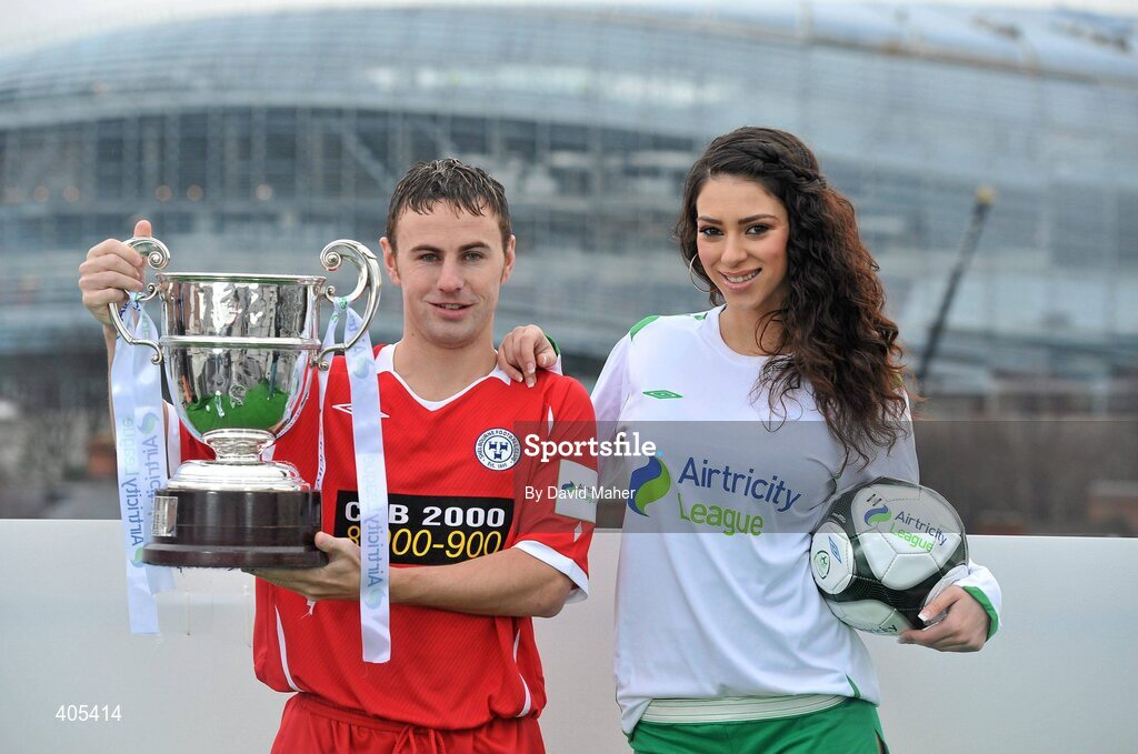 26 February 2010; David Cassidy, Shelbourne, with model Georgia Salpa at the launch of 2010 Airtricity First Division. D4 Berkely Hotel, Ballsbridge, Dublin. Picture credit: David Maher / SPORTSFILE