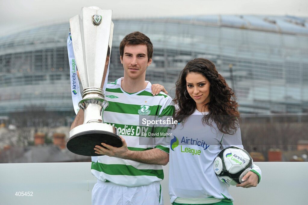 26 February 2010; Craig Sives, Shamrock Rovers, with model Georgia Salpa at the launch of 2010 Airtricity Premier Division. D4 Berkely Hotel, Ballsbridge, Dublin. Picture credit: David Maher / SPORTSFILE