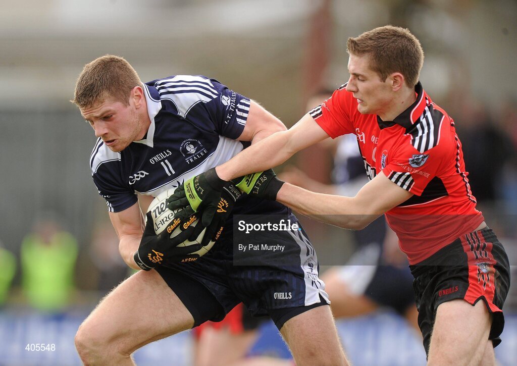 27 February 2010; Gary O'Driscoll, IT Tralee, in action against Patrick Burke, Trinity College. Ulster Bank Trench Cup Final, Institute of Technology Tralee v Trinity College, Leixlip GAA Club, Leixlip, Co. Kildare. Picture credit: Pat Murphy / SPORTSFILE