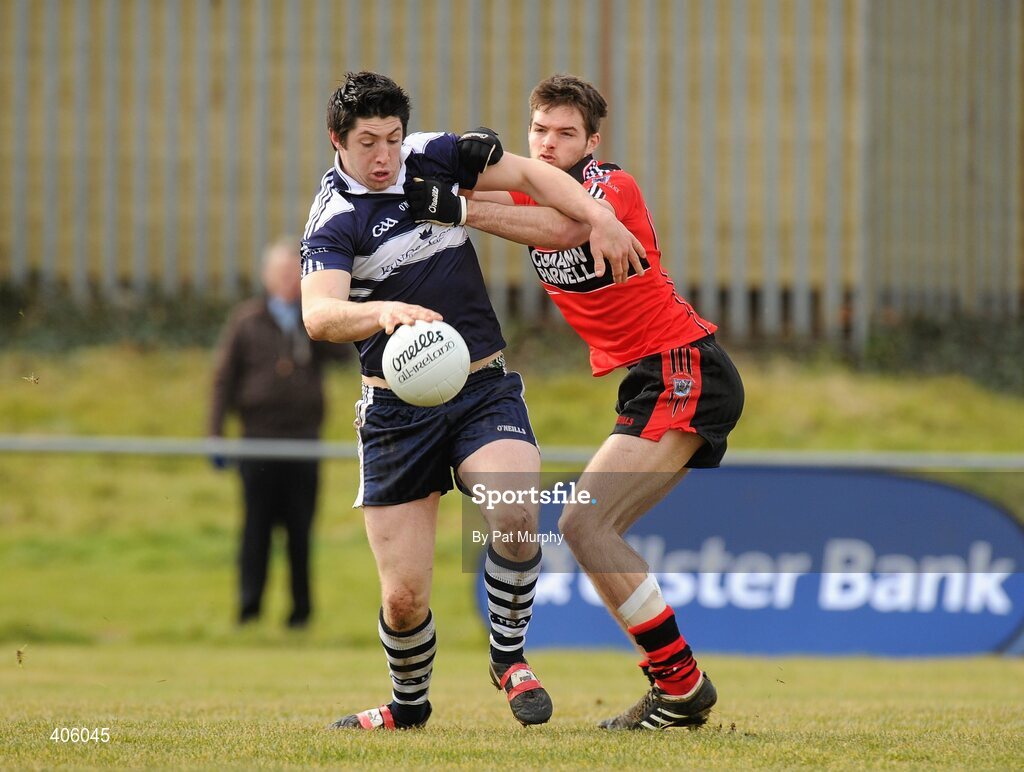 27 February 2010; Luke Kavanagh, IT Tralee, in action against Ger McCafferky, Trinity College. Ulster Bank Trench Cup Final, Institute of Technology Tralee v Trinity College, Leixlip GAA Club, Leixlip, Co. Kildare. Picture credit: Pat Murphy / SPORTSFILE