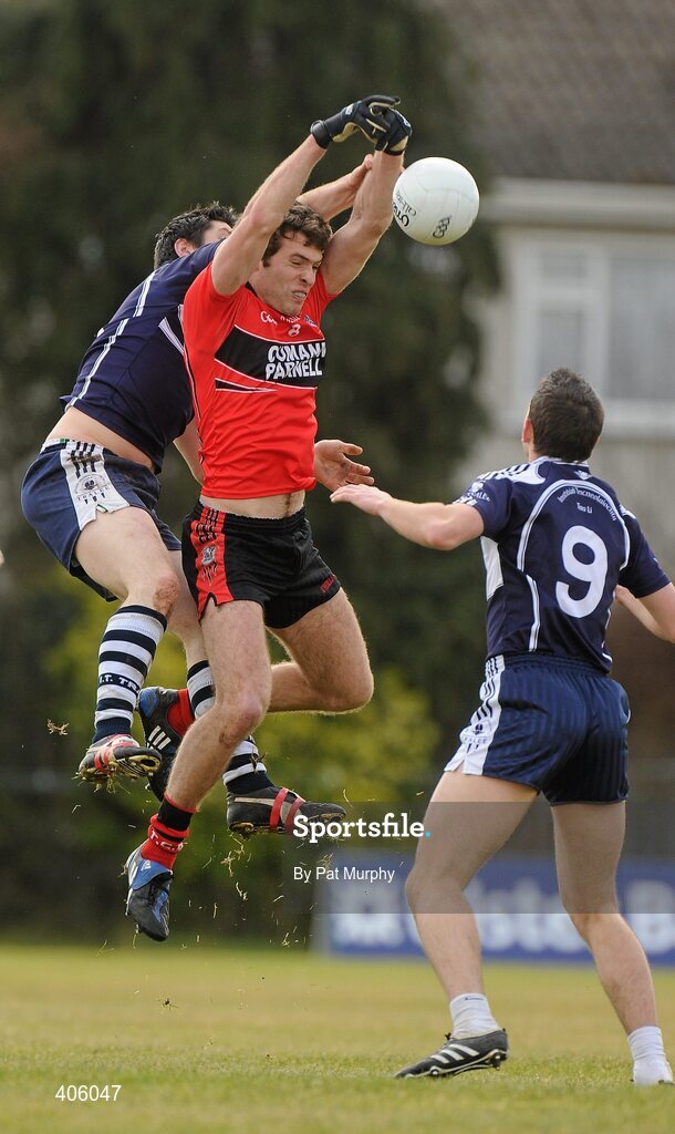 27 February 2010; Aaron Hurley, Trinity College, in action against Luke Kavanagh, left, and Paul O'Donoghue, IT Tralee. Ulster Bank Trench Cup Final, Institute of Technology Tralee v Trinity College, Leixlip GAA Club, Leixlip, Co. Kildare. Picture credit: Pat Murphy / SPORTSFILE