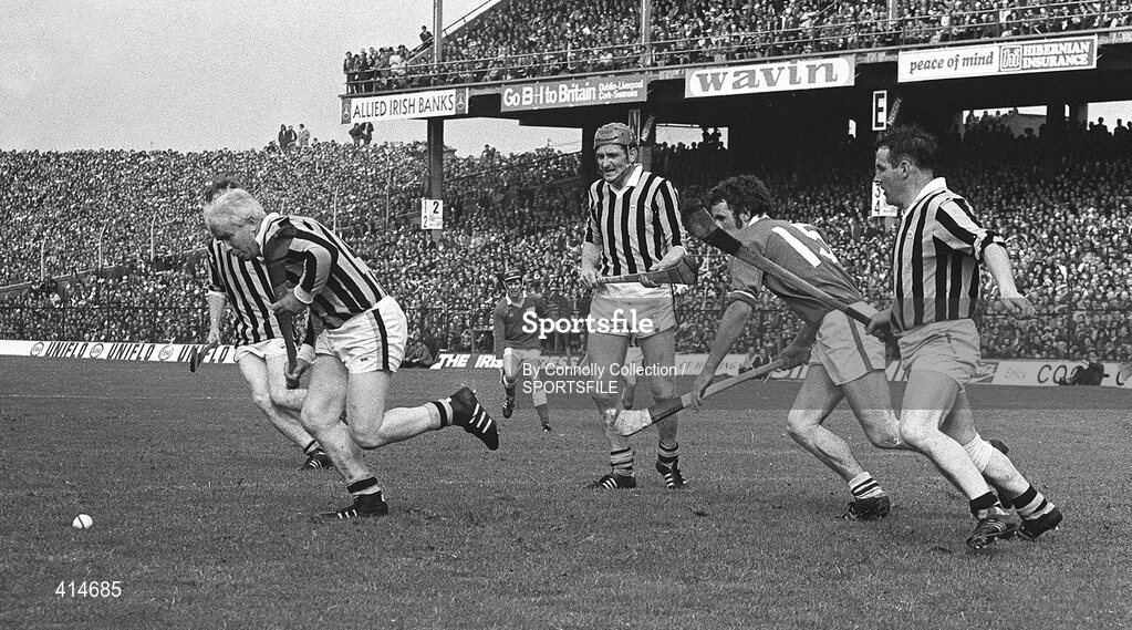 1 September 1974; Jim Tracey, left, Pat Henderson and Fan Larkin, right, Kilkenny, in action against Frankie Nolan, Limerick. All-Ireland Senior Hurling Championship Final, Kilkenny v Limerick, Croke Park, Dublin. Picture credit; Connolly Collection / SPORTSFILE
