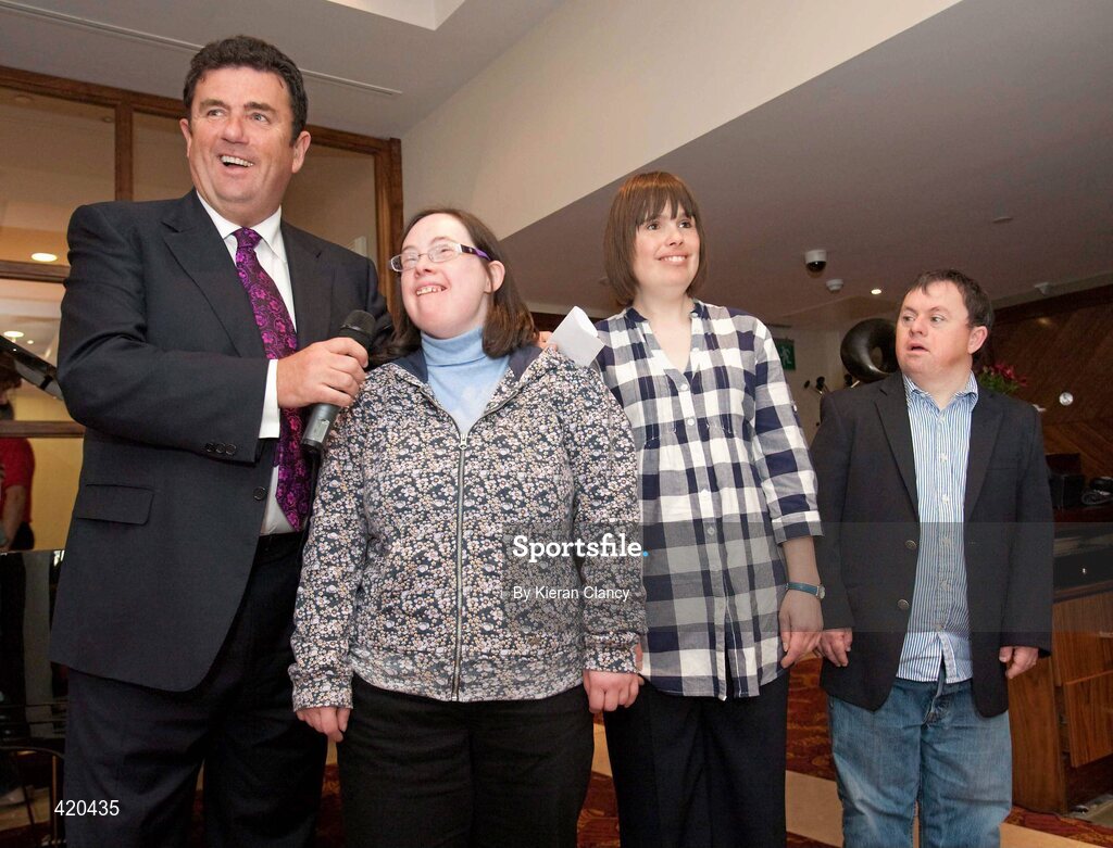 23 April 2010; Special Olympics Ireland All-Ireland Collection Day took place all across Ireland today, a Coffee Morning, hosted by RTE’s Des Cahill was held in The Savoy Hotel, Limerick, to mark this important day in Special Olympics Ireland’s fundraising calendar. At the coffee morning is Des Cahill from RTE interviewing Special Olympic athletes Emily Hurley, Face of the Games, Rebecca Bourke and Pat Dorgan. Savoy Hotel, Limerick. Picture credit: Kieran Clancy / SPORTSFILE