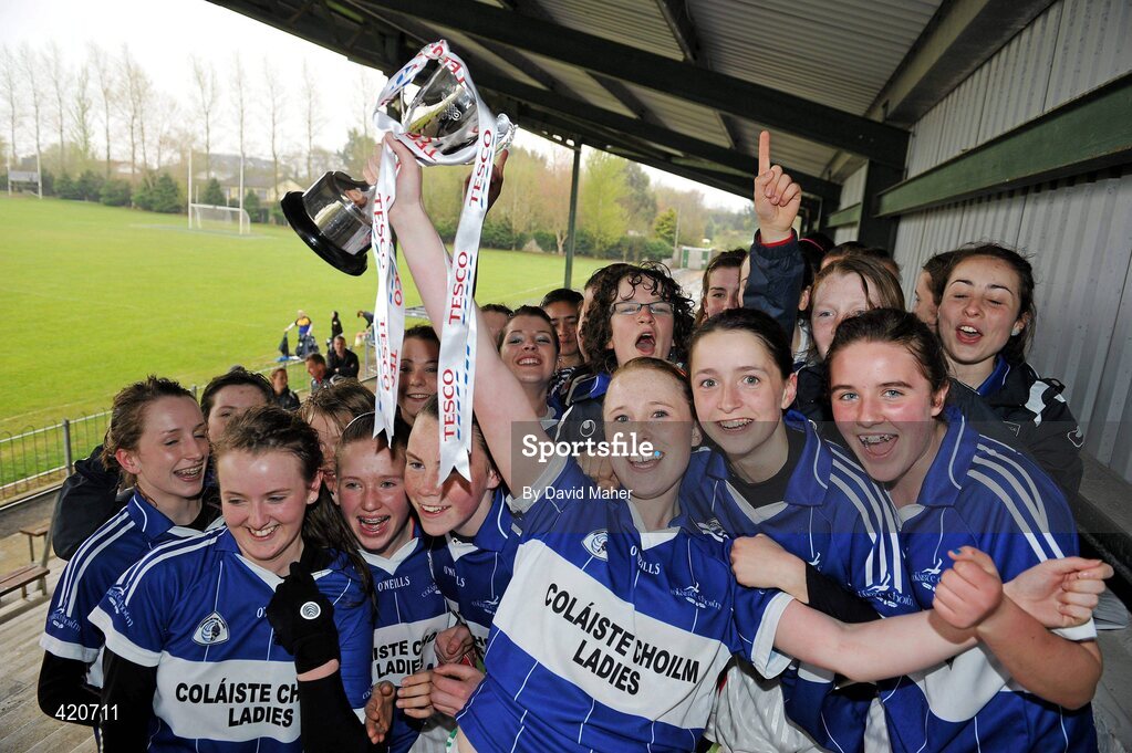 24 April 2010; Colaiste Choilim players celebrate after victory over Scoil Mhuire. Tesco All-Ireland Junior C Post Primary Schools Final, Colaiste Choilim, Ballincollig, Cork v Scoil Mhuire, Trim, Meath, St Rynaghs GAA, Banagher, Co Offaly. Picture credit: David Maher / SPORTSFILE