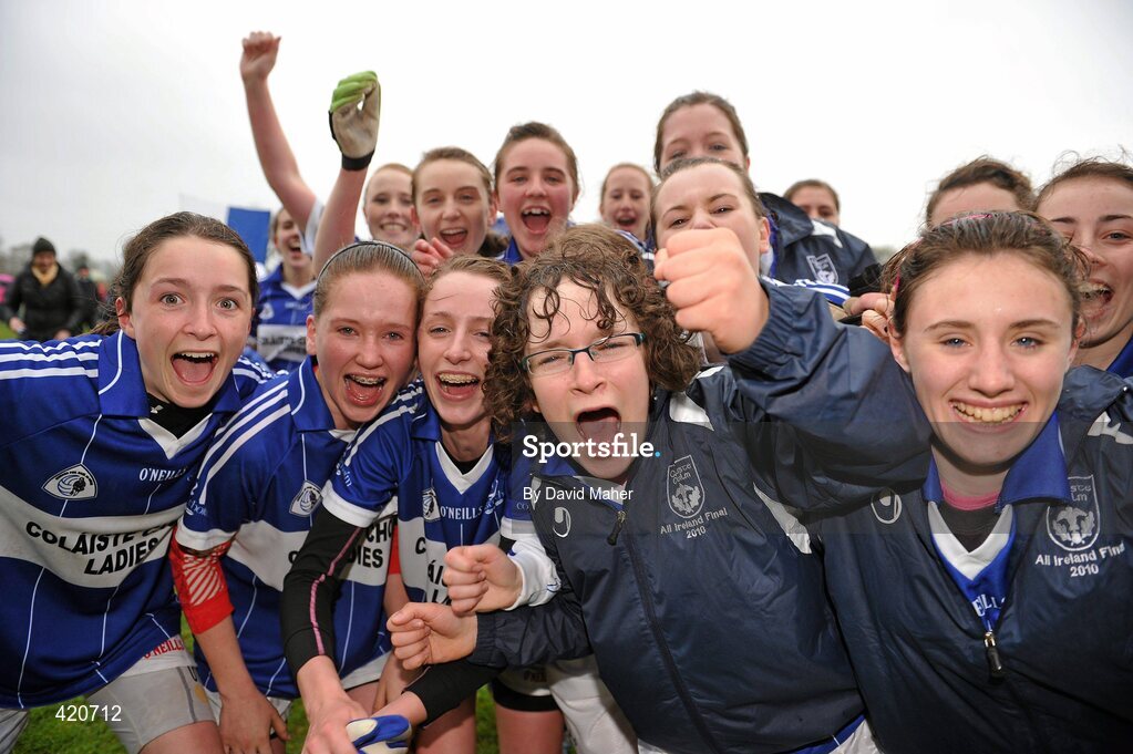 24 April 2010; The Colaiste Choilim players celebrate victory over Scoil Mhuire. Tesco All-Ireland Junior C Post Primary Schools Final, Colaiste Choilim, Ballincollig, Cork v Scoil Mhuire, Trim, Meath, St Rynaghs GAA, Banagher, Co Offaly. Picture credit: David Maher / SPORTSFILE