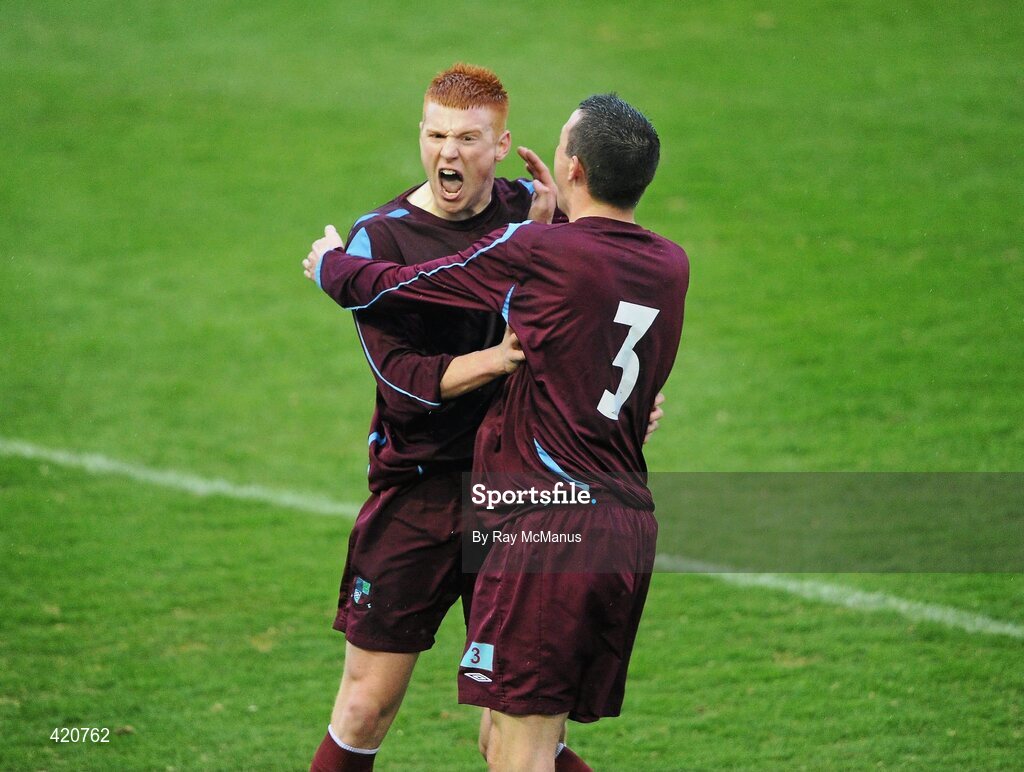 24 April 2010; Rory Gaffney celebrates scoring his first of two goals for Mervue United with team-mate Mark Ludden. Airtricity League First Division, Mervue United v Salthill Devon, Terryland Park, Galway. Picture credit: Ray McManus / SPORTSFILE