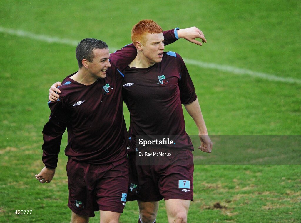 24 April 2010; Rory Gaffney celebrates scoring his first of two goals, for Mervue United, with team-mate Mark Ludden. Airtricity League First Division, Mervue United v Salthill Devon, Terryland Park, Galway. Picture credit: Ray McManus / SPORTSFILE