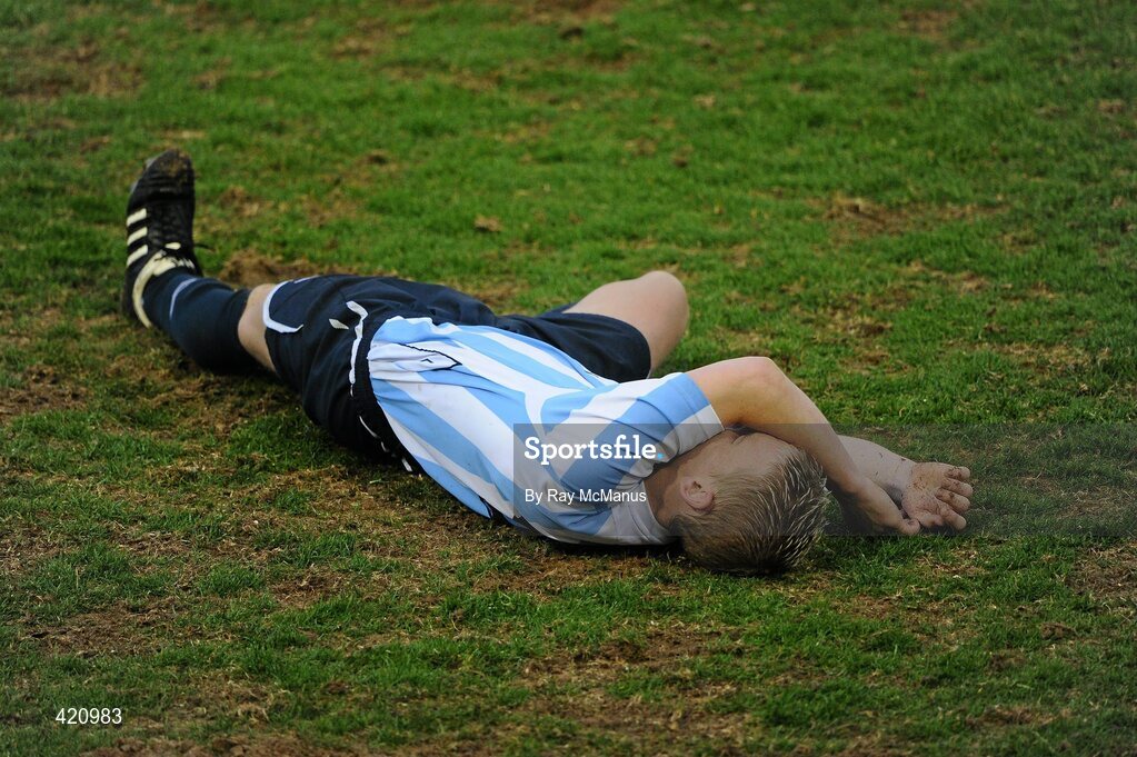 24 April 2010; Mikey Gilmore, Salthill Devon, awaits assistance for an injury. Airtricity League First Division, Mervue United v Salthill Devon, Terryland Park, Galway. Picture credit: Ray McManus / SPORTSFILE