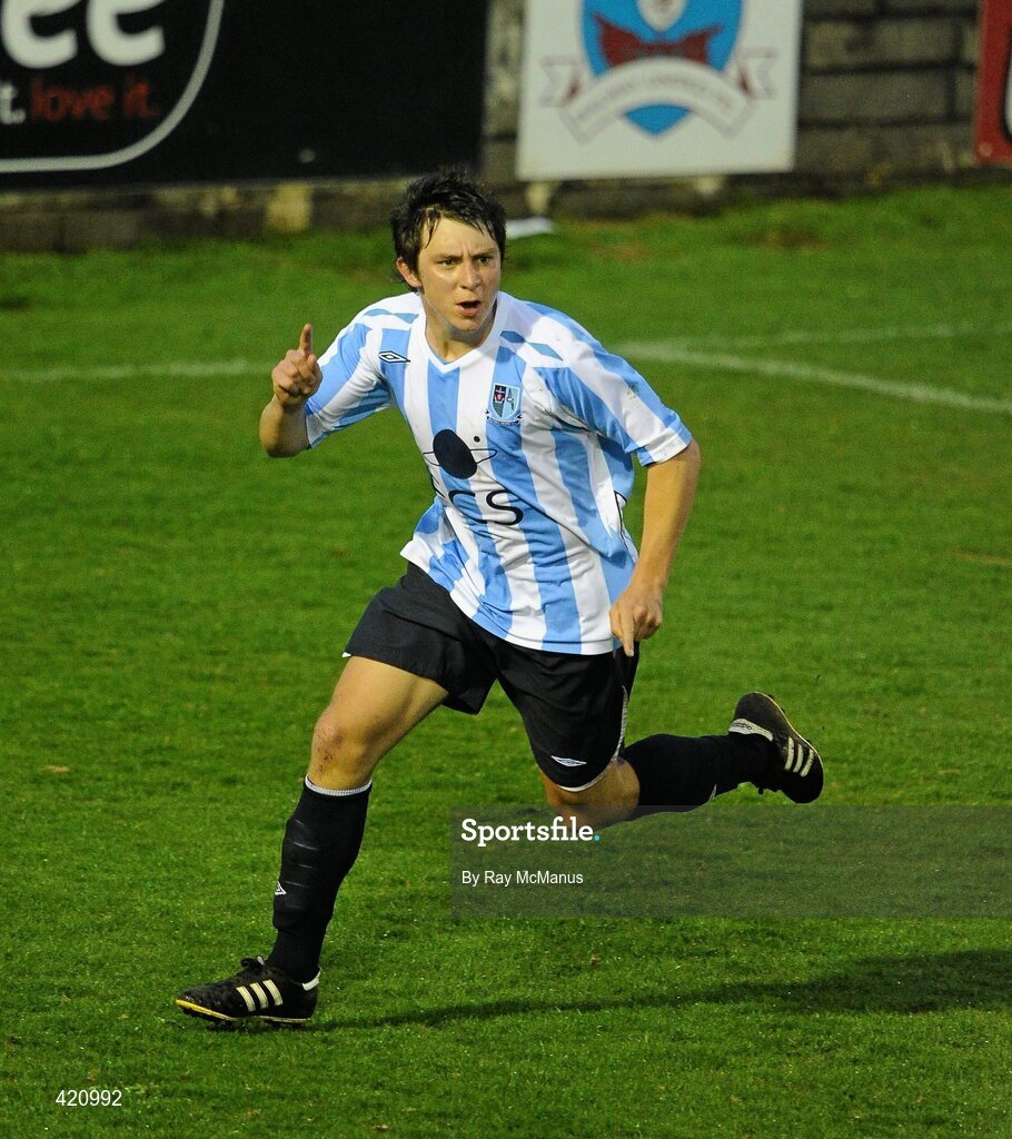 24 April 2010; Enda Dunne celebrates scoring the second goal for Salthill Devon. Airtricity League First Division, Mervue United v Salthill Devon, Terryland Park, Galway. Picture credit: Ray McManus / SPORTSFILE
