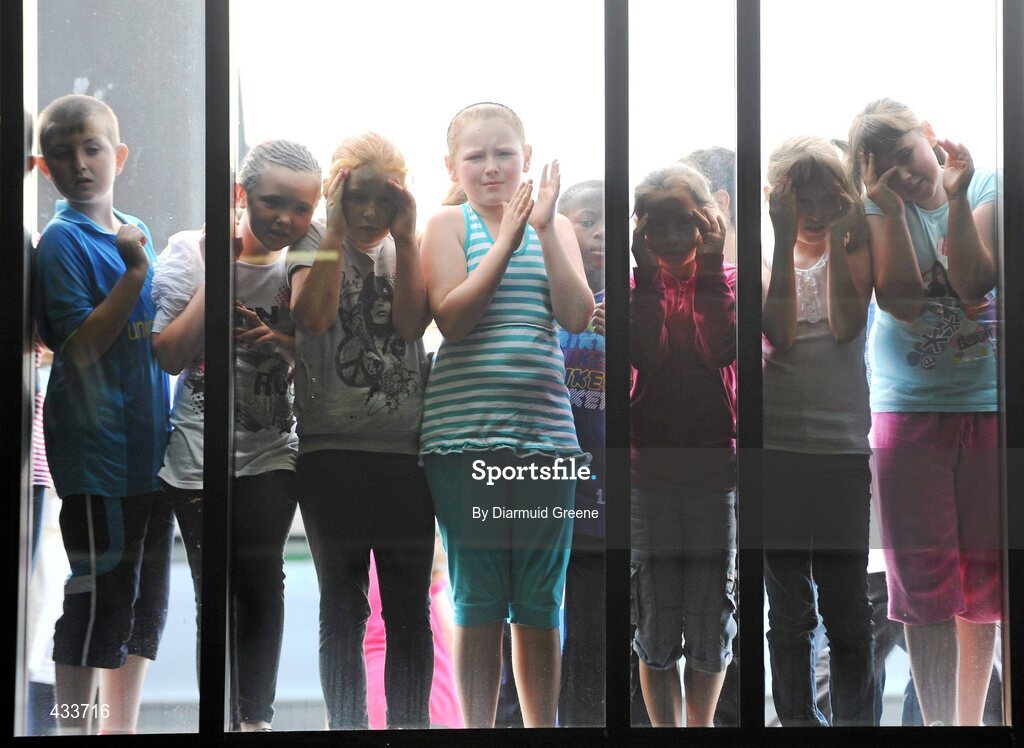 11 June 2010; Young spectators try to get a better vantage point through a window in the Tailteann Centre. Motor Activity Training Programme, 2010 Special Olympics Ireland Games. Tailteann Centre, Mary Immaculate College, Limerick. Picture credit: Diarmuid Greene / SPORTSFILE