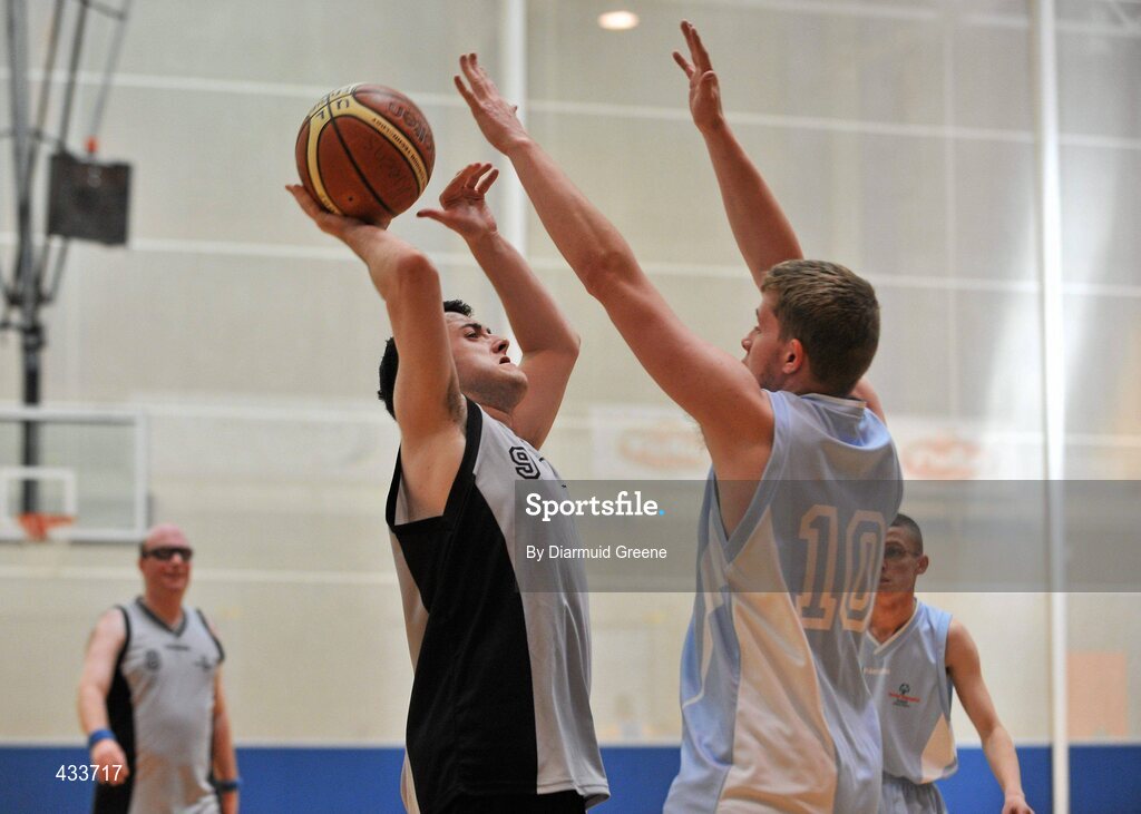 11 June 2010; Dominic McCullion, from Strabane, Co. Tyrone, in action against Nathan Finney, from Eastern Region, during the Mens Basketball second day at the 2010 Special Olympics Ireland Games. University of Limerick, Limerick. Picture credit: Diarmuid Greene / SPORTSFILE