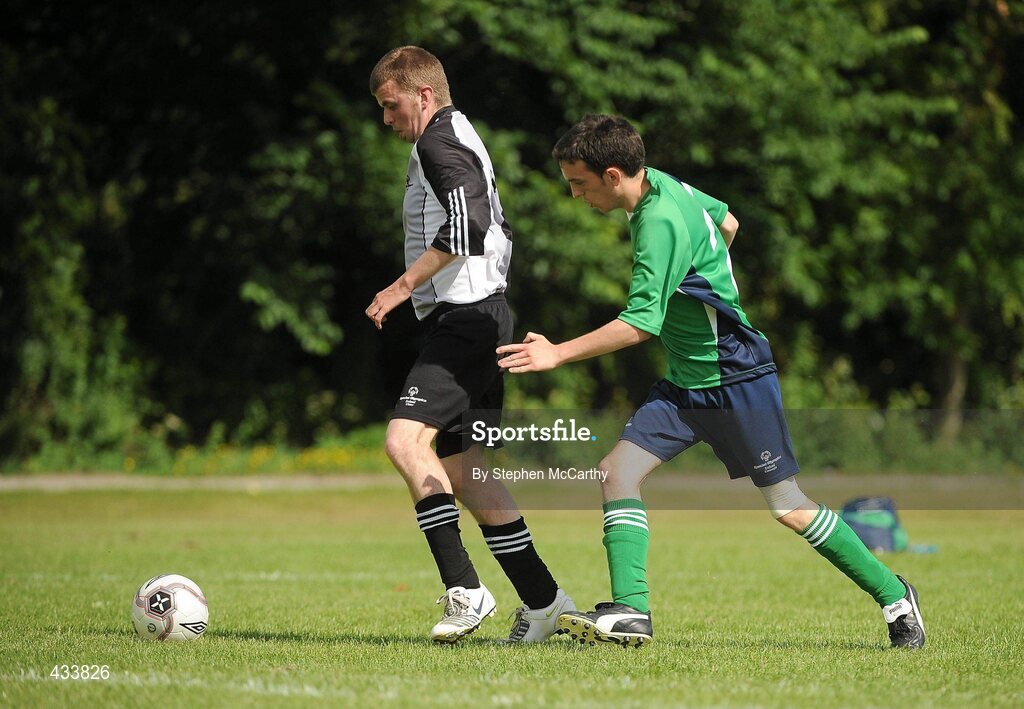 11 June 2010; Darren Courtney, from Belfast, Antrim, Ulster Region, left, in action against Shane O'Brien, from Barna, Galway, Connacht Region, during the football events during the second day of the 2010 Special Olympics Ireland Games. University of Limerick, Limerick. Picture credit: Stephen McCarthy / SPORTSFILE