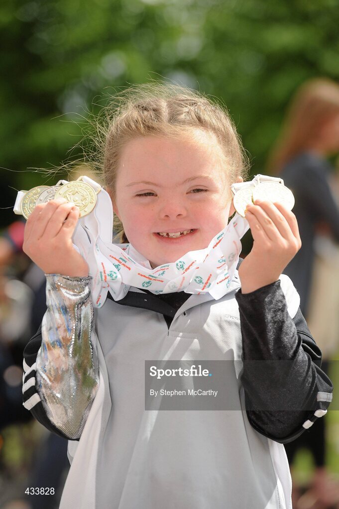 11 June 2010; Meg Carr, from Letterkenny, Co. Donegal, age 9, who is the youngest competing athlete and won 5 gold medals and 1 silver medal in Gymnastics during the second day of the 2010 Special Olympics Ireland Games. University of Limerick, Limerick. Picture credit: Stephen McCarthy / SPORTSFILE